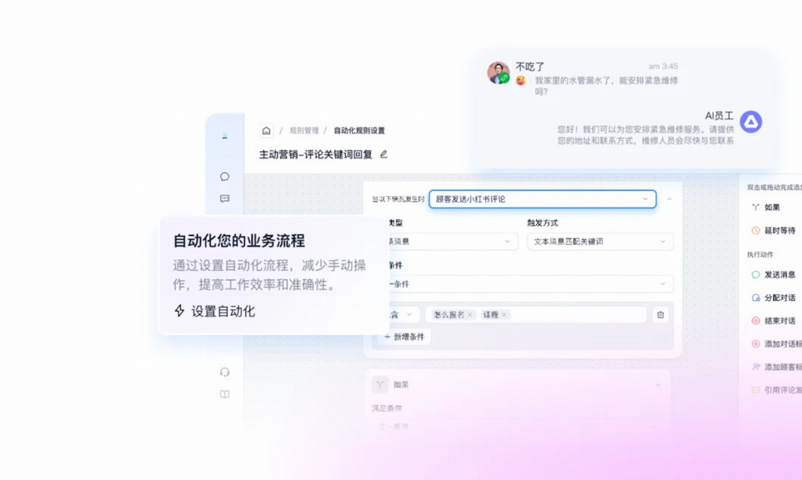 私域承接难: 社交媒体和新媒体流量(如小红书、抖音私信)承接难度高,人工处理效率低下,使得私域流量的价值无法充分释放。